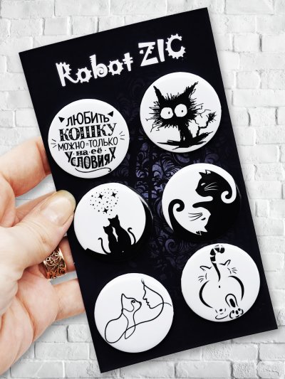 Набор закатных значков Кошки (6шт, D38мм) Готовый и оригинальный подарок подруге, другу, парню, ребенку, любимому парню на 23 февраля, 8 марта и День